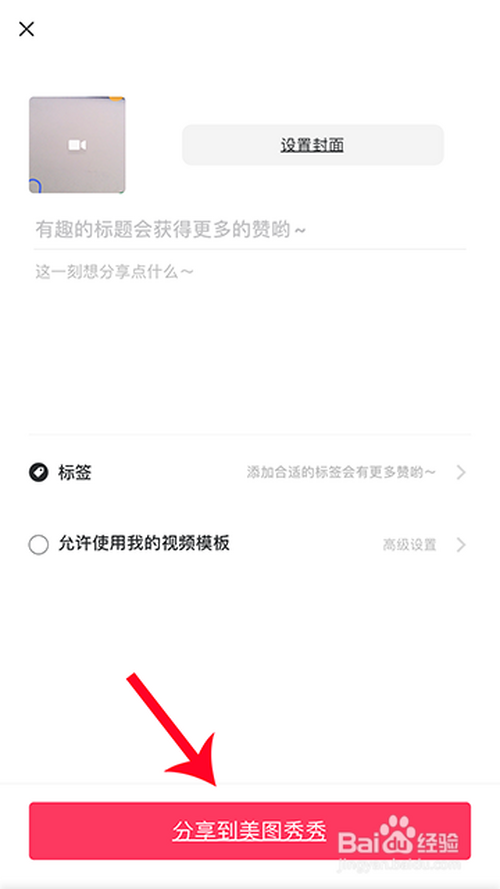 将图框选中可调节长度,调节好后,点击对勾,然后,选择“下一步”,加上标签,起上题目选择“分享到美图秀秀”即可。