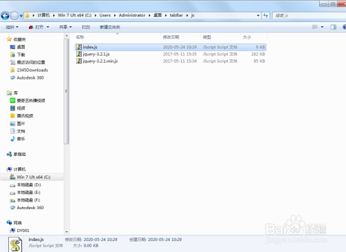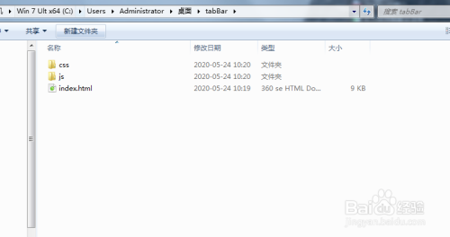 在桌面建立一个文件夹,名称为tabBar。同时在该文件夹下有建立Js,css等文件夹,一个用于存放Js文件,一个存放css样式文件。建立好该文件夹之后,下载Jqueyr.js文件