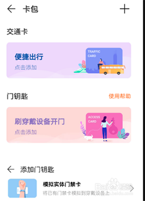 点击右上角+,选择门钥匙,然后模拟门禁卡。