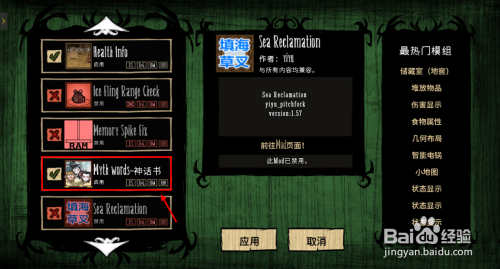 在左侧模组列表中找到神话书说选项并打钩。