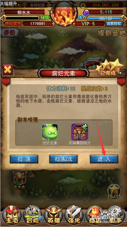 点击游戏本家儿菜单冒险,再点击子菜单副本按钮。