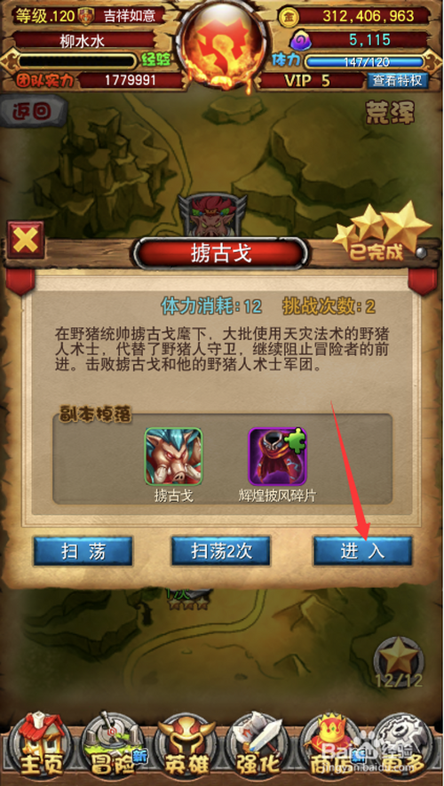 点击游戏本家儿菜单冒险,再点击子菜单副本按钮。