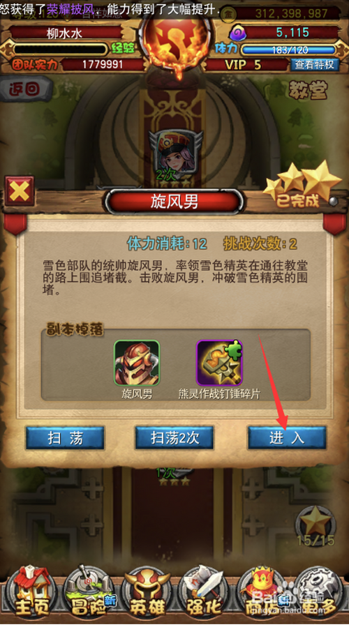 点击游戏本家儿菜单冒险,再点击子菜单副本按钮。