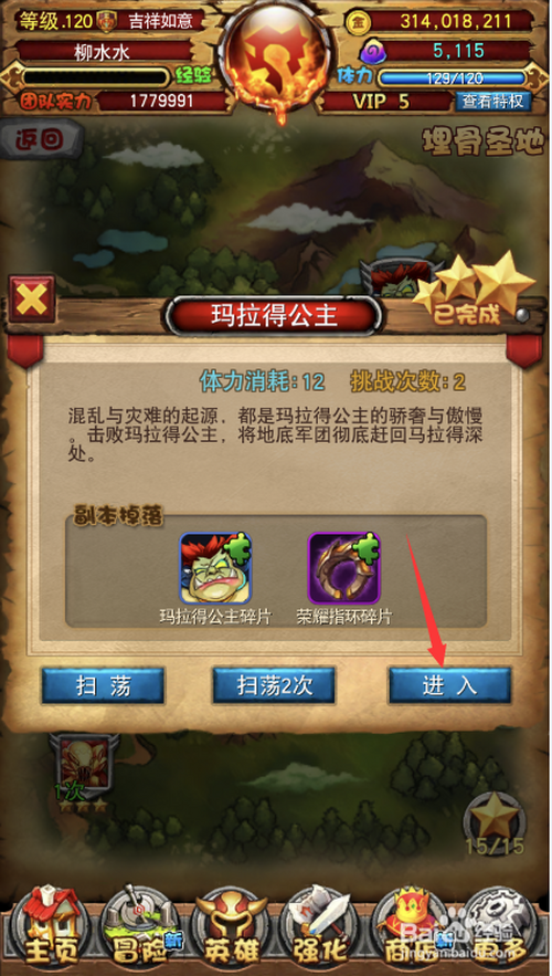 3.打开玛拉得公本家儿副本,点击进入按钮。