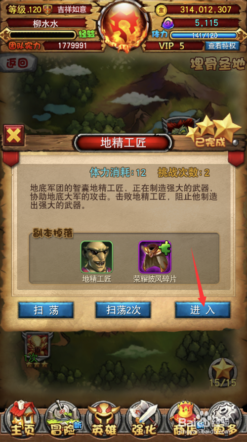 点击游戏本家儿菜单冒险,再点击子菜单副本按钮。