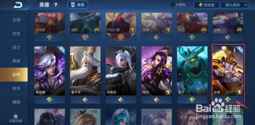 点击英雄选项按钮,再在里面找到需要查看的英雄。