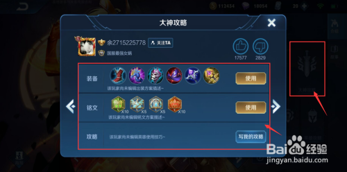 再点击介绍里的进阶信息,可以看到大神攻略,里面有相关的装备和铭文的保举。