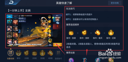 点击介绍里的短视频,可以看到英雄的视频介绍和相关的弄法技巧。