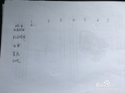1、起首拿出一张A4纸和一只笔。横纵写上天数和要去的城市、出发时候、达到时候、住宿、景点、小吃。