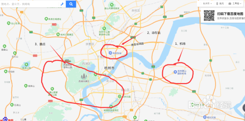 3、若是您做动车或者飞机,可事先查看动车站或者机场的位置,还有景区的位置,以下图杭州市为例,选择住宿的处所便利各个交通出行,好比地铁、brt等。