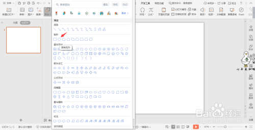 在插入选项卡中点击外形,选择此中的圆角矩形,在页面上绘制出外形。