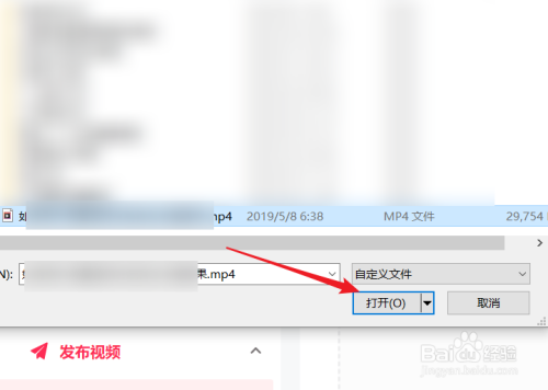 点击右侧【点击上传】,在弹出的窗口中,选择视频并点击【打开】。