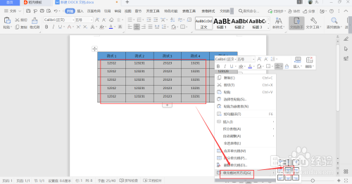 选中第一行数据,点击鼠标右键,找到边框和底纹,点击进入;