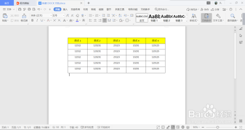 在文件夹中建立word文件,插入表格,并添加测试数据,也可以直接打开已有的数据文件;