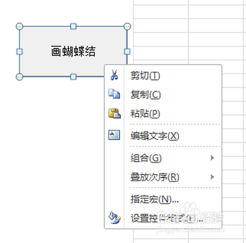 7.选中“画蝴蝶结”控件,然后点击鼠标右键,选择“指定宏”。