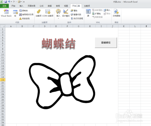 6.点击插入一个按钮控件,并定名为“画蝴蝶结”。