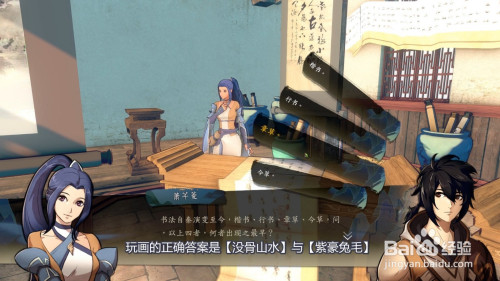 玩画的准确谜底是【没骨山川】与【紫豪兔毛】。