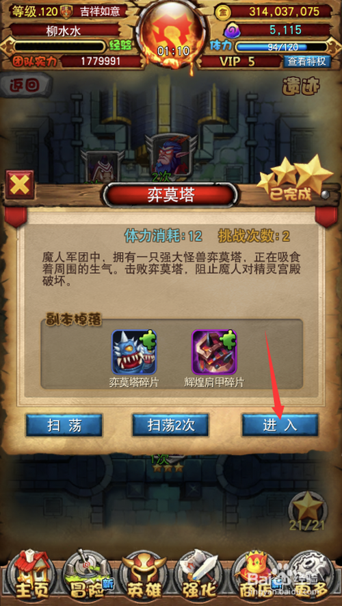 点击游戏本家儿菜单冒险,再点击子菜单副本按钮。