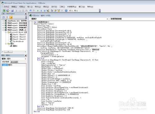 5.在VBA编纂界面,写入指定的VBA代码,然后点击封闭按钮。