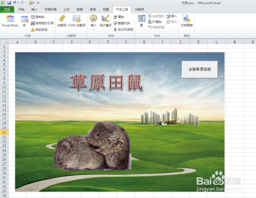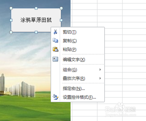 7.将按钮控件定名为“涂鸦草原田鼠”,然后点击右键,选择“指定宏”选项。