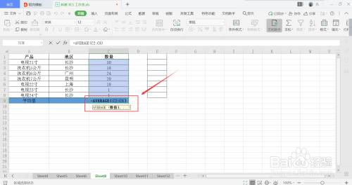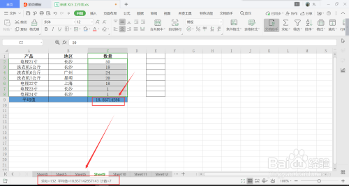 在平均值行对应的单位格中,输入平均值计较公式=AVERAGE(C2:C8),这里计较数目列的平均值;
