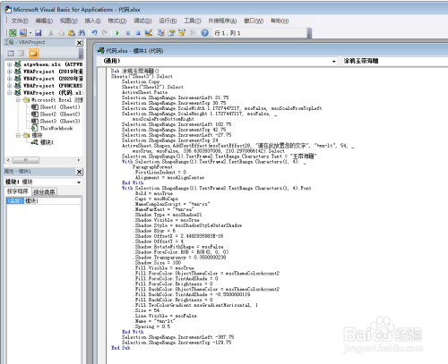 5.在VBA编纂界面,写入指定的VBA代码,然后点击封闭按钮。