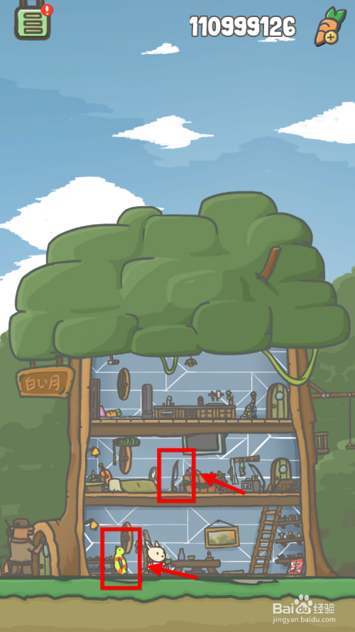 4、点击蘑菇屋内的垂钓杆或泅水圈,让胖兔到海边去。
