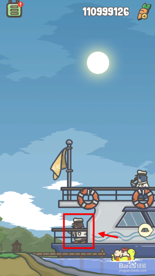5、如下图所示,汽船已经停靠在船埠了,点击汽船上的船员豆豆。