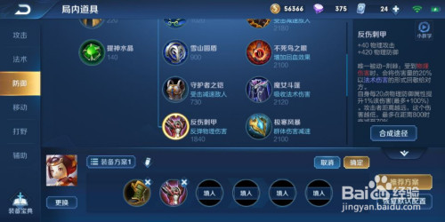 第二件装备:反伤刺甲,可觉得鲁班增添420物理防御,被动结果还可以反弹一部门危险,如下图所示。