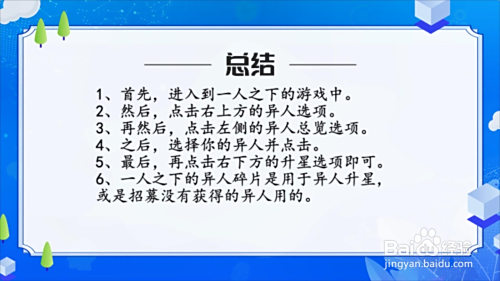 6、一人之下的异人碎片是用于异人升星,或是招募没有获得的异人用的。