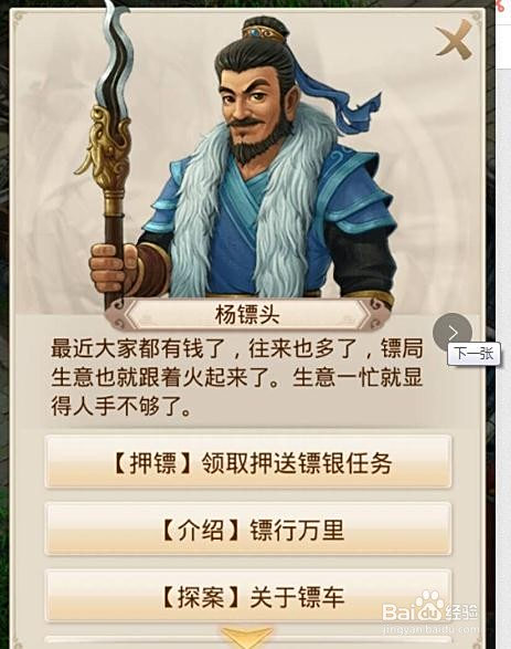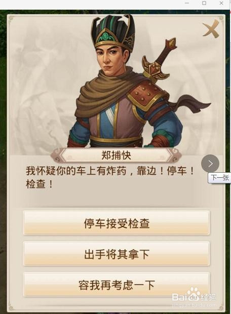 回到官府对话黄捕头,找到杨镖头,护送镖银,途中泊车查抄,如图所示