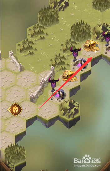 将中路轨道调当作图示样式,发射箭头所指炮台,打失落右下角最后一个火桶,继续推据点。