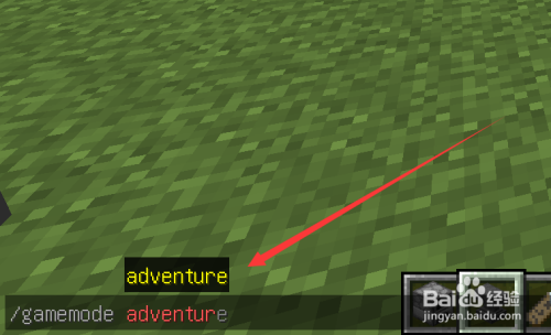 我们先按下Enter或者t键,并输入/gamemode adventure指令,按下Enter确认今后会将游戏模式切换到冒险模式。