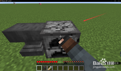 然后,在冒险模式下,我们是无法将手中的方块进行放置的,也无法对方块进行粉碎。