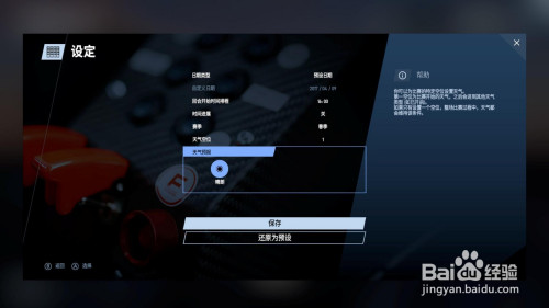 在接着,设定角逐日期、时候、赛季、气候状况等,设置好后点击【保留】。