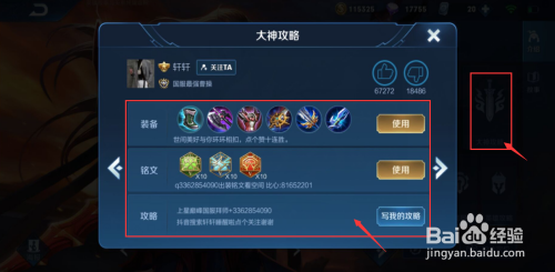 再点击介绍里的进阶信息,可以看到大神攻略,里面有相关的装备和铭文的保举。