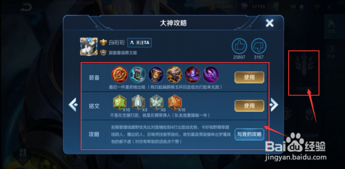 再点击介绍里的进阶信息,可以看到大神攻略,里面有相关的装备和铭文的保举。