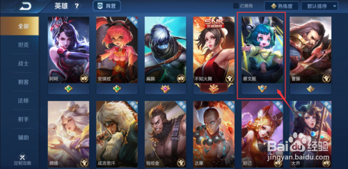 点击英雄选项按钮,再在里面找到需要查看的英雄。