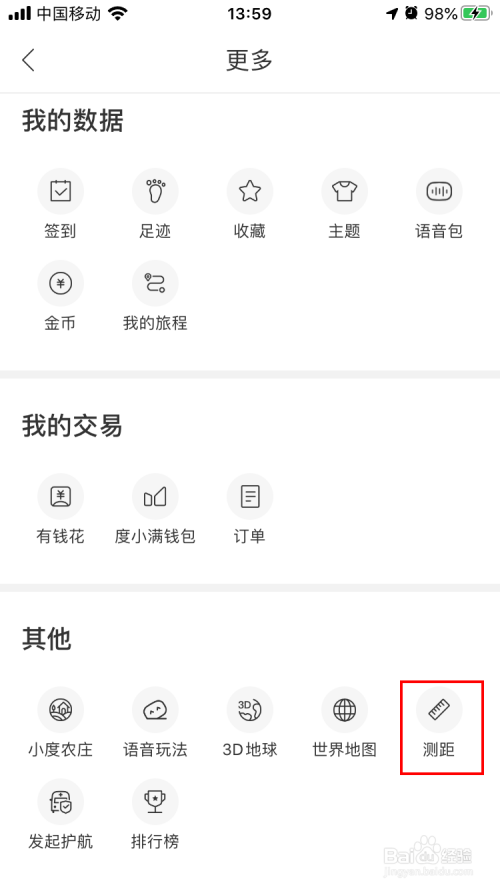 4、在更多页面下拉找到其他的那一栏,鄙人面有个测距的东西,点击打开