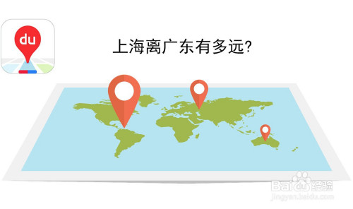 5、进入了测量两地距离的页面了,先找到上海市,然后点击一下确定起点,然后在手指缩小地图找到广东省,在广东省内(就以广州为例)再点击一下,一条显示两地距离的直线就呈现了。