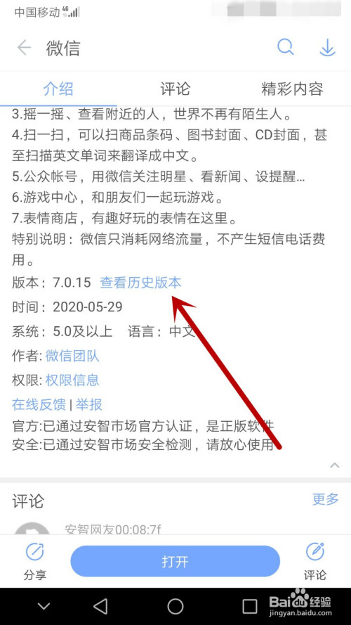 然后就会跳出一堆信息介绍,再继续下拉找到‘查看汗青版本’点进去。