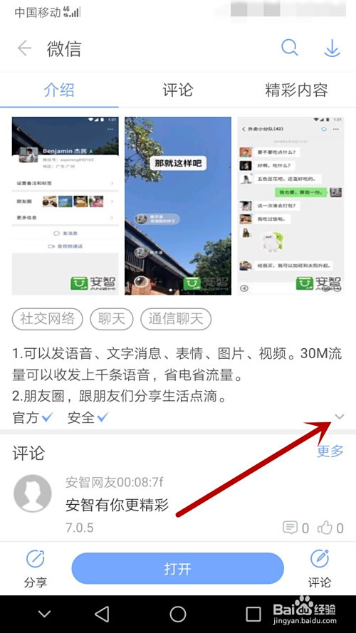 点击微信进入,下拉然后点击介绍处的‘v’。