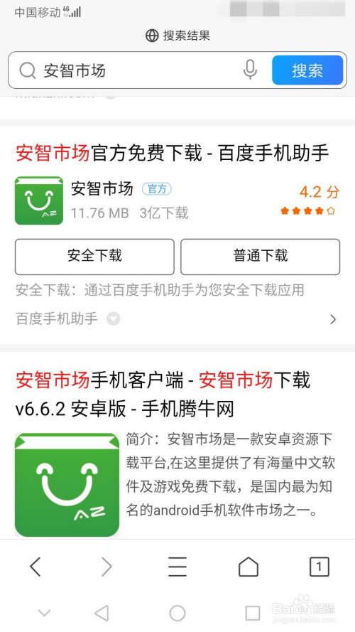 在手机浏览器中搜刮‘安智市场’并下载它。