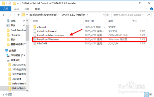进入smapi文件夹,找到 install on windows 文件, 双击进行安装。