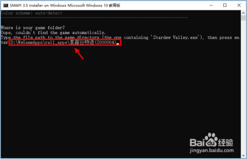 smapi会本身导入游戏地址,找不到的环境可以本身复制粘贴游戏路径,如下图所示。