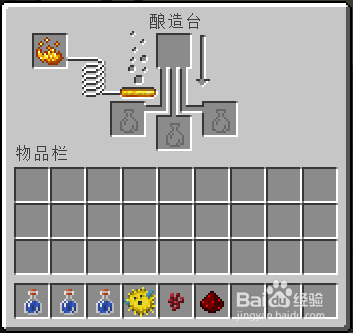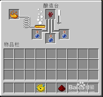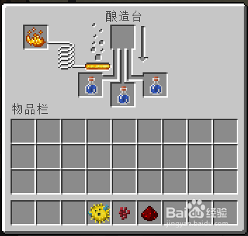 酿造前先要合当作酿造台,酿造台是用一个烈焰棒和3个圆石合当作的,烈焰棒可以经由过程在地狱打烈焰人获得。
