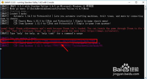 以上步调完当作后启动游戏,不雅察smapi窗口,看主动出产mod可否正常启动,如不克不及系统会给出英文提醒,告诉您原因,按照提醒从头操作。