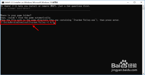 3、接着smapi会主动检索游戏路径,找不到就本身粘贴地址。