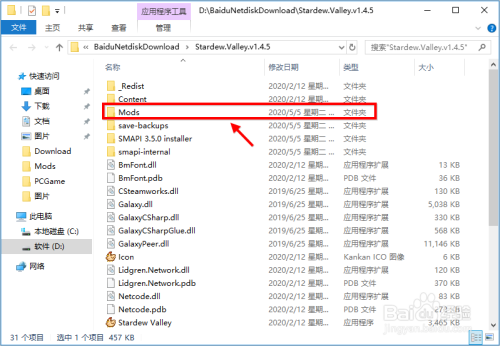 打开星露谷物语游戏目次,发现多出mod文件夹,此处用来放置各类mod。