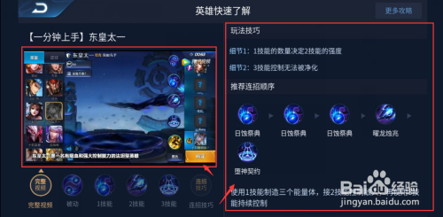 点击介绍里的短视频,可以看到英雄的视频介绍和相关的弄法技巧。